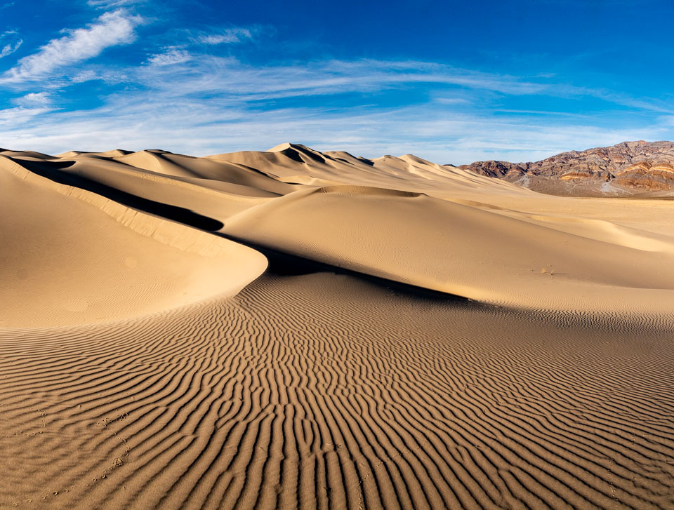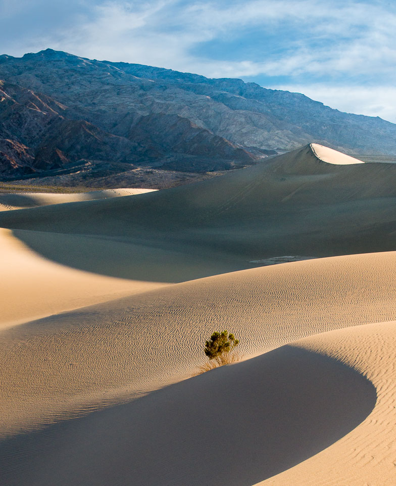 Death Valley National Park offers opportunities for both casual and experienced hikers to walk among its sand dunes. While Mesquite Flats is easily accessible for most visitors, more experience back country adventurers will want to visit the remote Eureka Dunes. We have plans to explore the more challenging dunes of Death Valley in the future. This folio is a collection of 12 images from Mesquite Flats and Eureka Dunes in Death Valley that provide a glimpse into this wonderful, but fragile environment. We hope this folio encourages others to venture deeper into the park, mindful of the care we must all take to preserve its pristine nature.